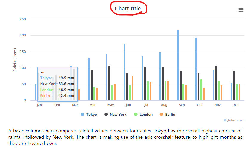 text: 'Monthly Average Rainfall' // 차트 맨 위에 Title을 입력하는 부분입니다.